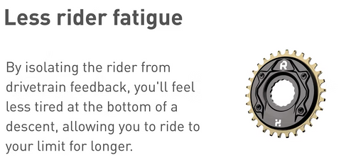 ・ドライブトレインのキックバックを軽減し、スムーズなペダリングを実現